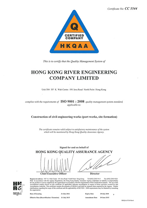 HKQAA - ISO 9001 : 2008 (Certification No. CC5544)