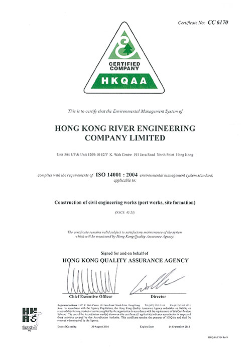 香港質量保證局-ISO14001:2004(認證證書編號 CC6170)