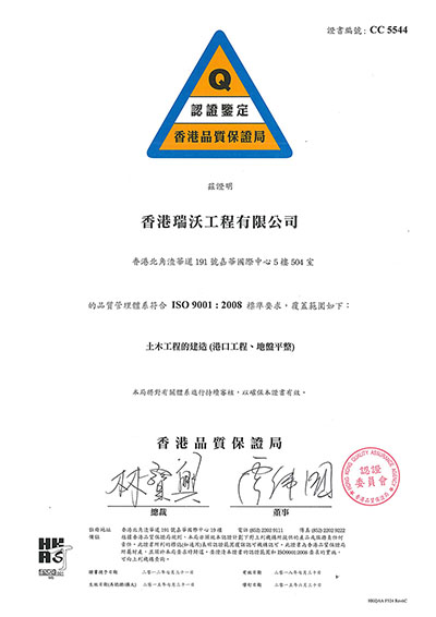 香港質量保證局- ISO9001:2008(認證證書編號CC5544)