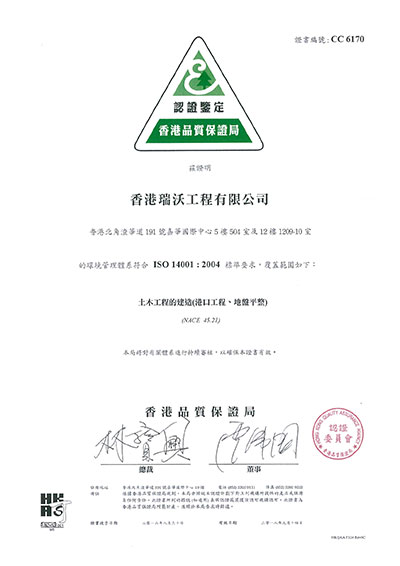 香港質量保證局-ISO14001:2004(認證證書編號 CC6170)